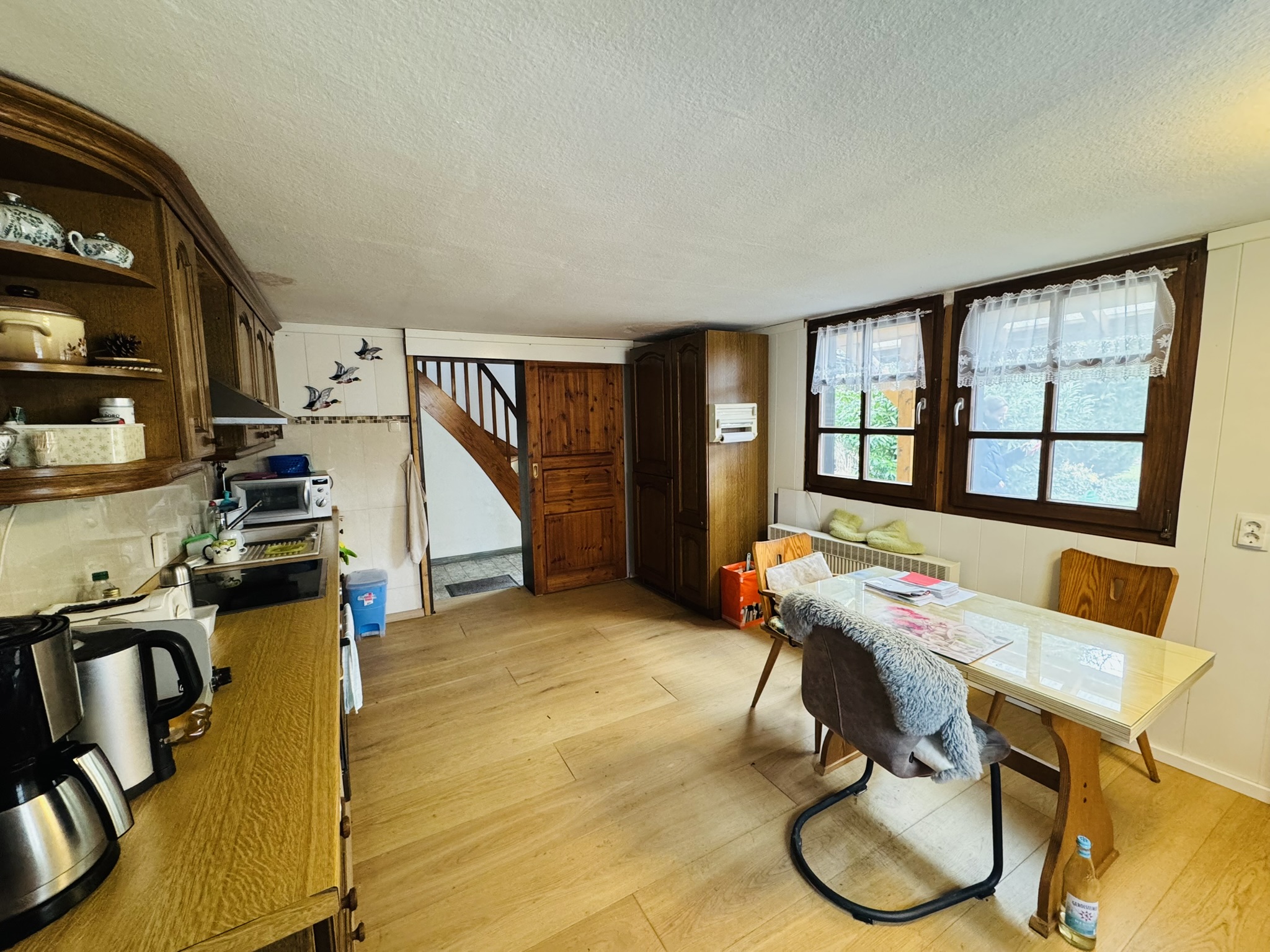 Im Erdgeschoss befindet sich eine großzügige Küche mit Essbereich sowie das Wohnzimmer mit Kaminofenanschluss